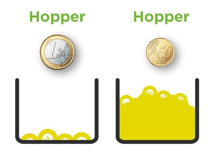 Ainsi, les pièces de 1 € sont économisées et les pièces de 0.50 € se vident naturellement.