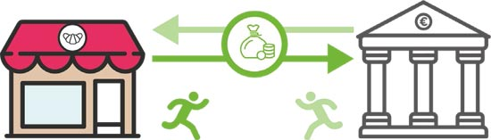 Le commerçant a donc moins besoin d’aller à la banque. Il augmente de plusieurs jours voir plusieurs semaines son autonomie et simplifie son travail.
